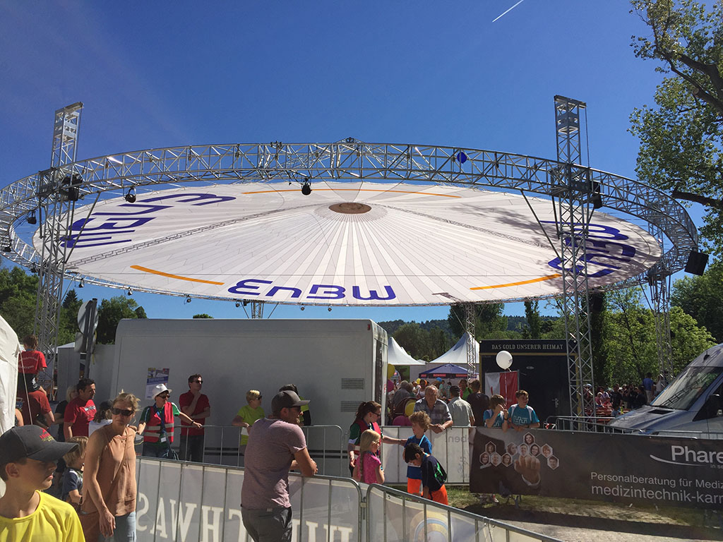 Individuelle Promotion für EnBW durch Branding der Überdachungsmembran. (Bild: Magic Sky)