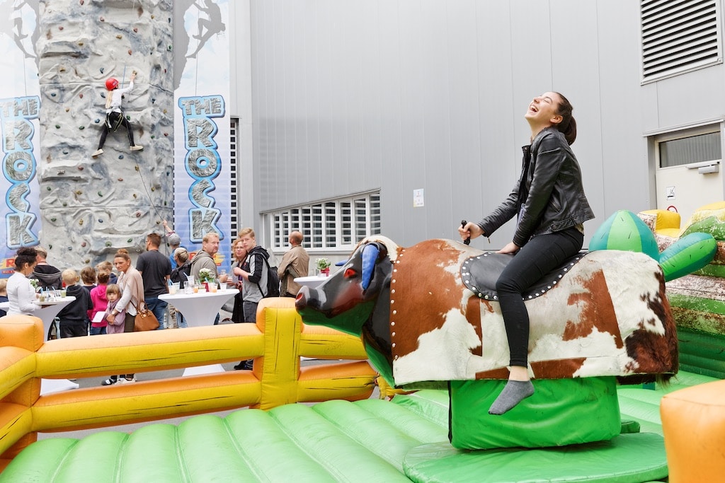 Bullenreiten und (gesichertes) Bouldern waren gerne angenommene Angebote. (Bild: Jörg Küster)