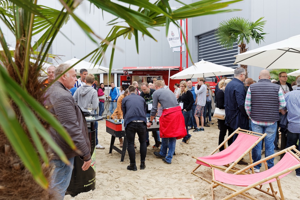 Passend zu einem Sommerfest durfte ein Beach Club nicht fehlen: Nahe von Werkstor 3.1 sorgten frisch aufgeschütteter Sand und einige Palmen trotz des wechselhaften Wetters für einen Hauch von Strandgefühl. Der Club war während der gesamten Veranstaltungsdauer bestens besucht. Ein auf einer EasyStage 30 mit Layher Sidewing-Anbauten tänzelnder DJ bewies das richtige Händchen für aktuelle Tracks – rundherum wurde angeregt geplaudert, leidenschaftlich gekickert und freundschaftlich mit Flaschen einer angesagten Biermarke angestoßen. Wer mochte, konnte ganz in der Nähe Autoscooter fahren, eine Boulder-Wand erklimmen, per Segway einen abgesteckten Parcours absolvieren oder die eigenen Kräfte mit Kollegen beim klassischen Hau-den-Lukas messen.