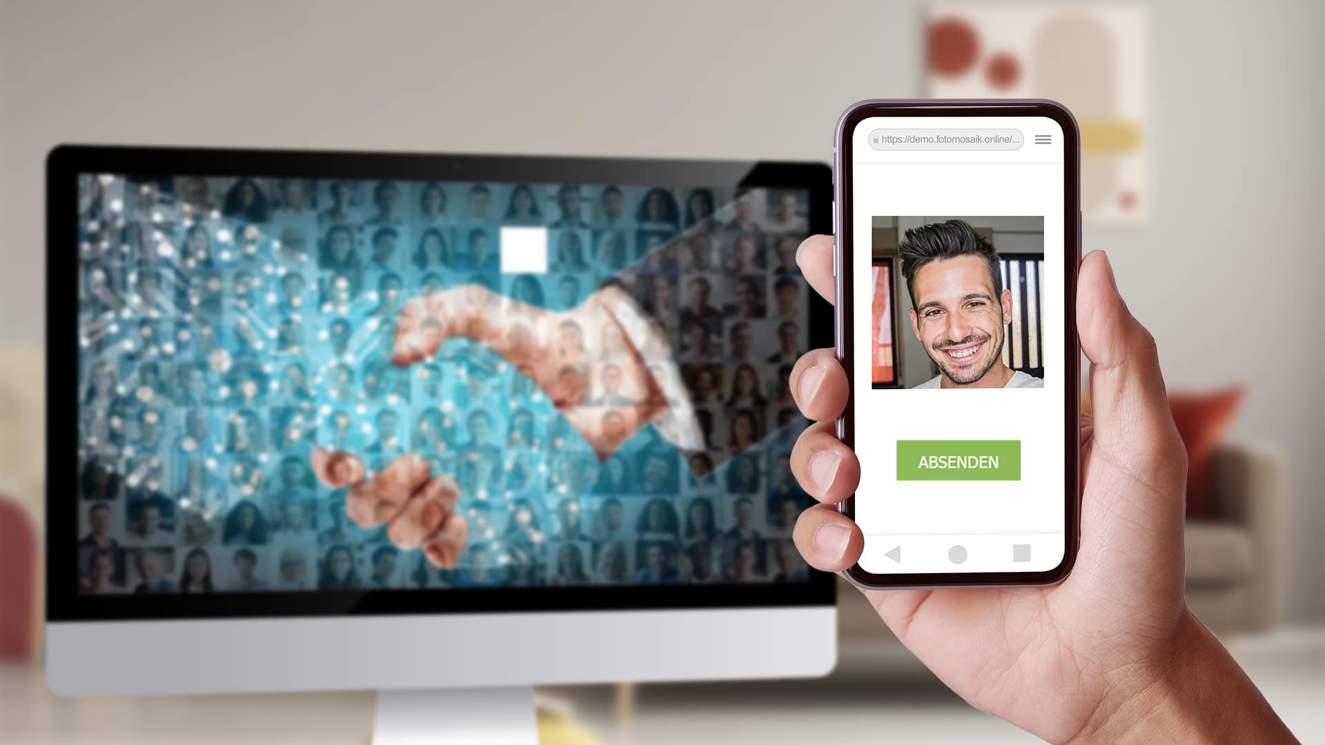 Das Online-Fotomosaik: interaktive Darstellung der Eventbotschaft mit Teilnehmenden-Fotos – jede:r ist Teil des großen Ganzen