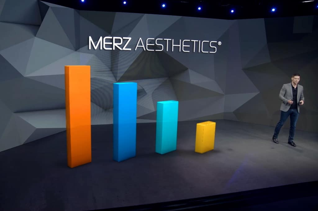 Augmented Reality, als Modell für getrackte virtuelle Umgebungen. Mit Hilfe von AR können Objekte wie Deckenstrukturen, virtuelle Produkte, große typografische Elemente oder Branding-Objekte in Bühnen eingefügt werden, um Räume in Welten ohne physische Grenzen zu verwandeln. Darüber hinaus können Echtzeit-Datenintegrationen oder nutzergenerierte Inhalte für AR genutzt werden. Dies schafft eine intuitive Informationsdimension und ermöglicht es den Zuschauer:innen, Inhalte auf eine nachhaltigere Art zu konsumieren.