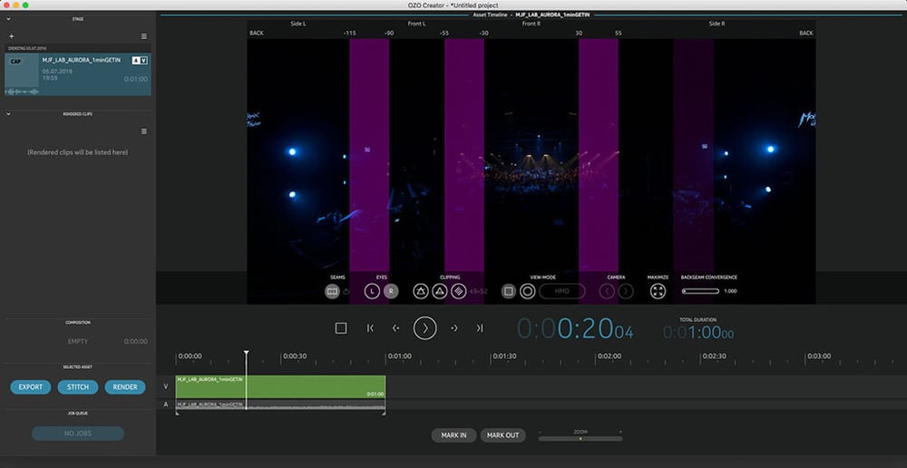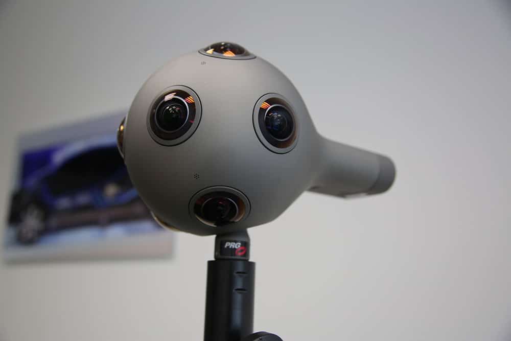 Um Inhalte für Virtual Reality zu erstellen, benötigt man – zumindest im professionellen Bereich – Kamerasysteme, die sich von gewöhnlichem Kamera-Equipment unterscheiden. Meistens werden dazu sogenannte Kamera-Rigs verwendet, also nebeneinander geschaltete Kameras, die auf eine Halterung montiert sind. Im PRG Lab in Düsseldorf hat man sich zur Erstellung von 360°-Content für die aktuelle Lösung von Nokia entschieden: das OZO-System. Verpackt in einer kugelförmigen Gestalt, vereint das OZO-System acht HD-Kameras. Das System verfügt über ein äußerst kompaktes und stylisches Design, das nicht größer als ein menschlicher Kopf ist. Dadurch lässt sich die Kamera relativ leicht in eine Veranstaltung oder eine Bühnengestaltung integrieren. Im Gegensatz zu vielen Konkurrenzprodukten kommt das OZO-System zudem mit verhältnismäßig wenigen Kabeln aus und kann bei Bedarf sogar im Batteriebetrieb laufen. Ein immenser Vorteil, denn ein größeres System mit 16 bis 18 Kameras mag vielleicht ein größeres Pixelmap bieten, bringt jedoch nichts, wenn das System aufgrund seiner Maße und seiner Verkabelung gar nicht erst ins Bühnenkonzept passt.