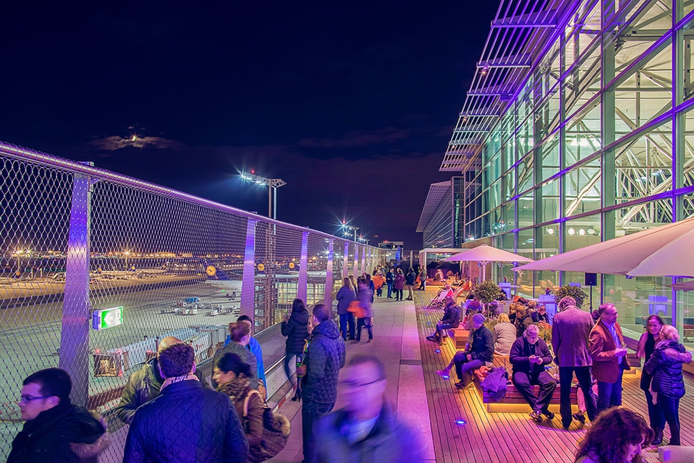 Besucherterrasse des Fraport Forum, das in direkter Nähe zum Frankfurter Flughafen liegt. (Bild: Colin Stejskal)