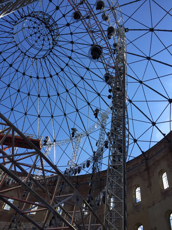 Die Dachkonstruktion diente – neben ihrer Funktion als fahrbarer „Deckel“ der Eventlocation – dazu, Last in Form von Licht-, Ton- und Videotechnik einzubringen sowie als Tragekonstruktion für Tuchakrobaten während der Show. Weiteres Highlight war das bis auf 28 Meter Höhe fahrbare kinetische Dach: 16 Tonnen Last wurden unter Einhaltung sämtlicher Sicherheitsauflagen über dem Publikum bewegt. Der dadurch entstandene Tiefeneffekt setzte die Artistik entsprechend in Szene.