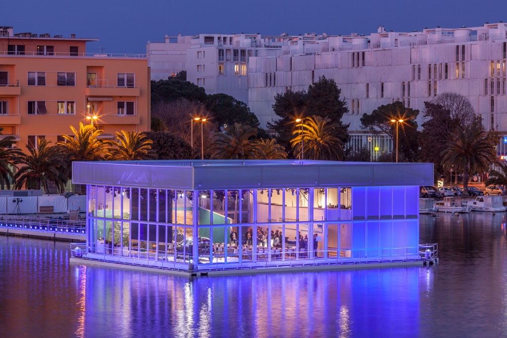 Ein auf Pontons schwimmender Eventbau im Hafen von Zadar. (Bild: Roder Gruppe)