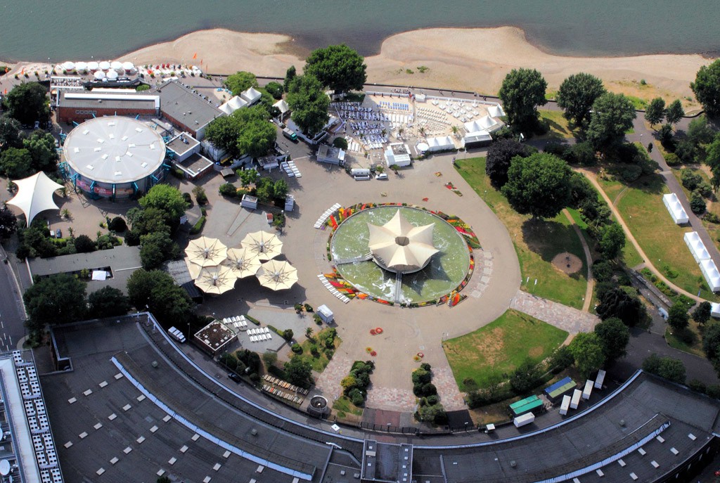 Luftbild vom Tanzbrunnen in Köln-Deutz (Bild: Volker Dennebier)