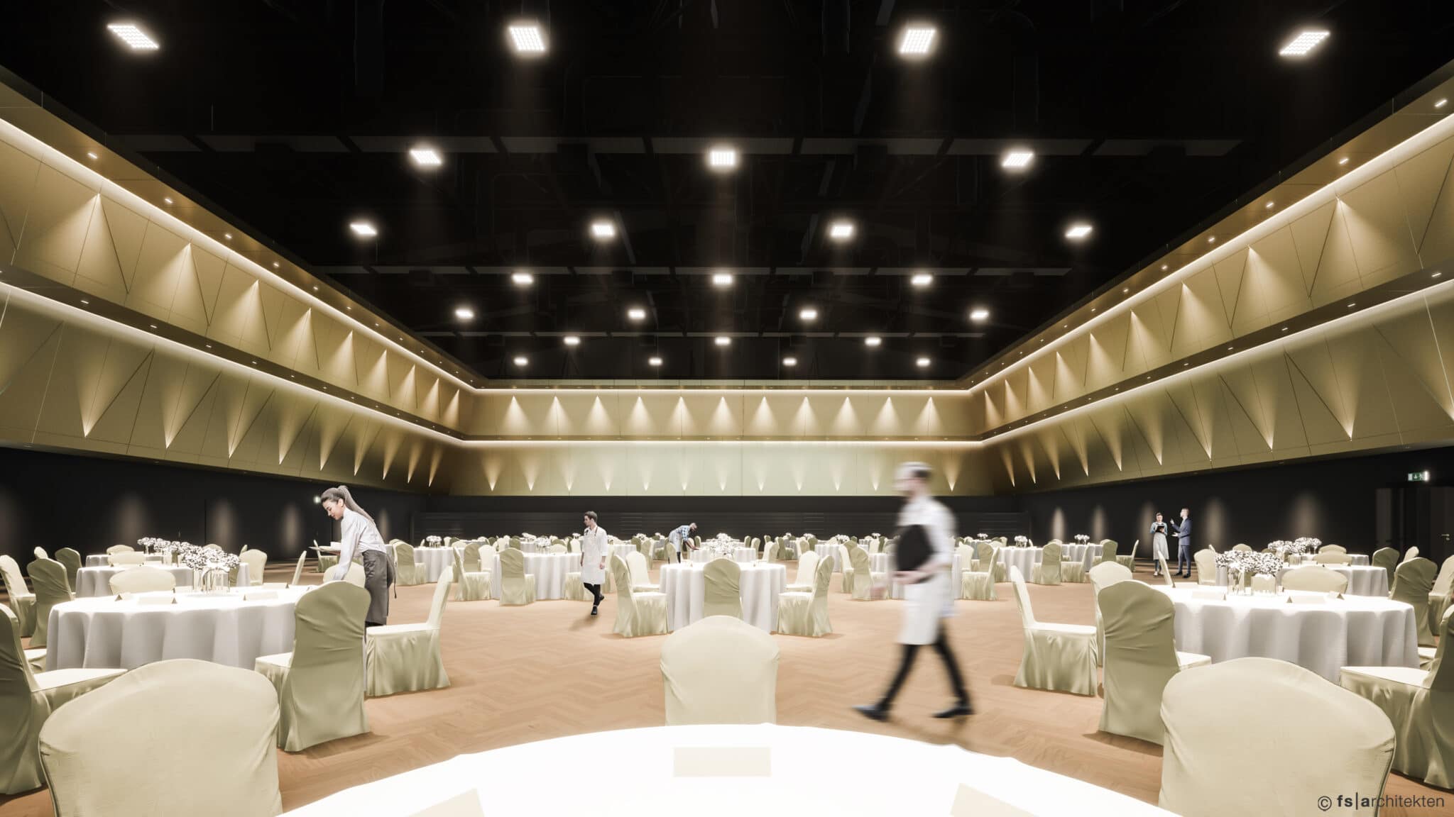 Ab Anfang Januar 2022 steht auch wieder der sanierte Kongress-Saal für Events aller Art zur Verfügung. (Bild: fs architekten_NOOKTA)