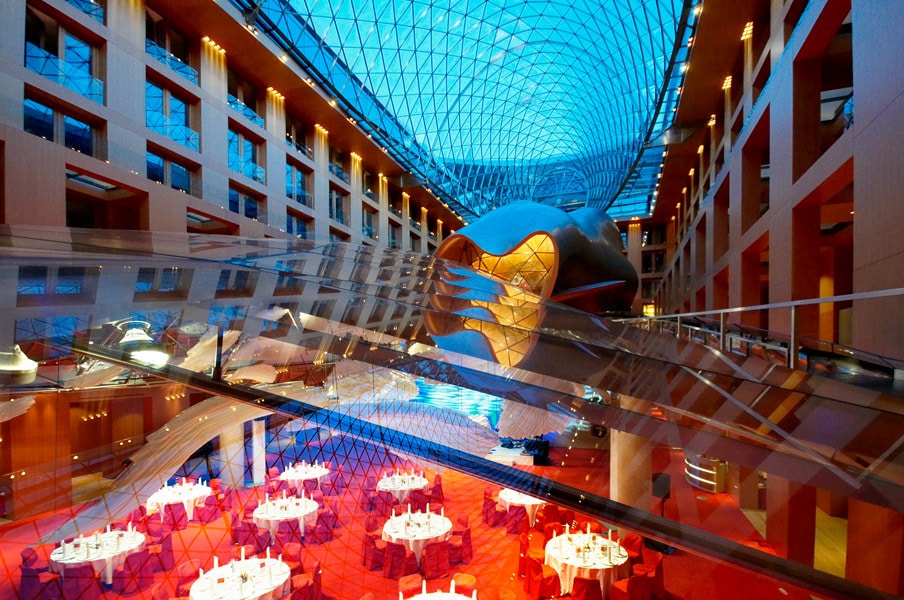 Das Atrium des AXICA Kongress- und Tagungszentrum in Berlin mit einer Gala im Forum. (Bild: AXICA / Nicole Fortin)