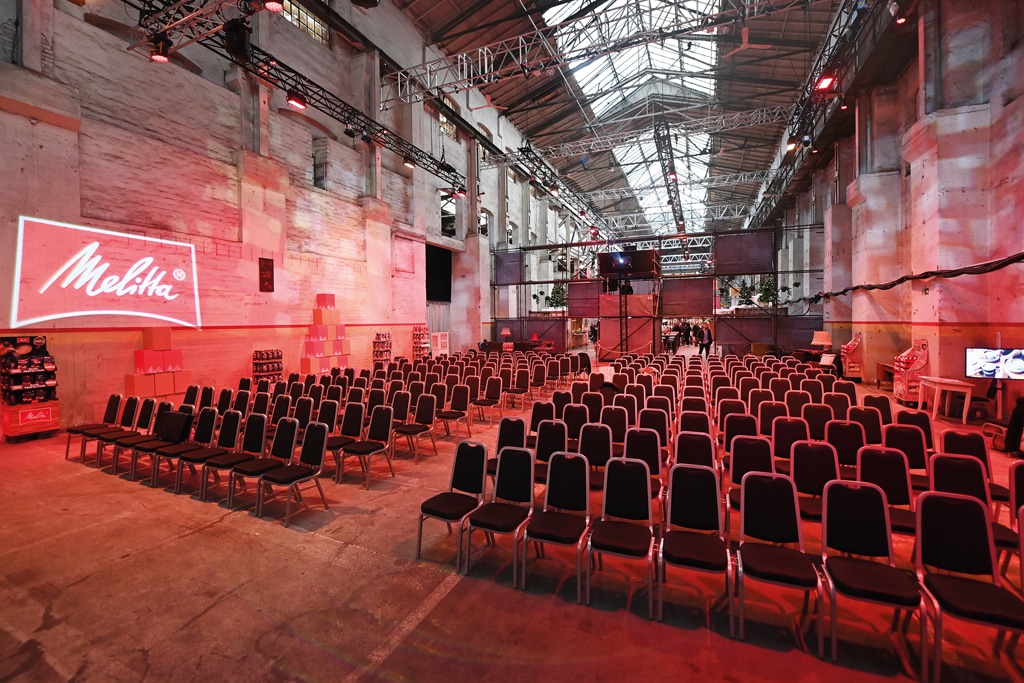 Ob Vorträge, Talks oder Produktpräsentationen – „Melitta Kaffee“ nutzte verschiedene Teile der vielseitigen Location für die multimediale Darstellung der lebensfrohen Markenwelt sowie der Unternehmensstrategie. Die Events endeten mit einer Weihnachtsfeier mit Live-Band, DJ und der Bremer Hiphop-Legende „FlowinImmO“.