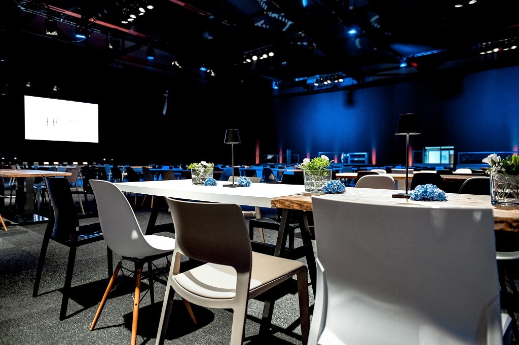Licht und Ton liegen in der Hand des Full-Service-Dienstleisters Realution, der etwa eine 26 m2 große LED-Wand für Präsentationen und Filme installiert hat. Die Halle kann entsprechend den Wünschen des Mieters angepasst werden, etwa indem einzelne Bereiche für eine VIP-Lounge oder ähnliches abgetrennt werden. 3.000 kostenlose Parkplätze stehen zur Verfügung und erleichtern die An- und Abreise sowie das Abstandhalten erheblich.