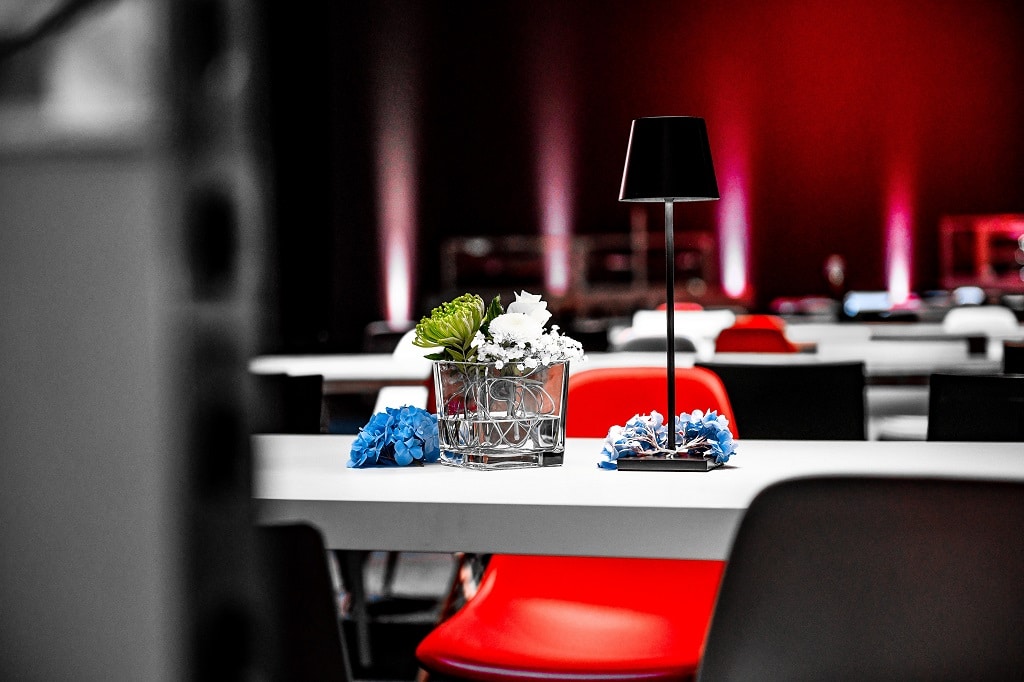 In den Meetingräumen entstanden u.a. ein Kontraste-Workshop sowie eine DJ-Summer-Lounge. Im Außenbereich gab es eine kleine Mobiliar-Ausstellung. Außerdem präsentierte Party Rent ein Table-Top-Schaufenster mit der Bristol Collection. In der Main Hall punktete ein cleanes Set-up. Besonderes Highlight waren die verschiedenen Thementische, gestaltet in den Trends für 2020.