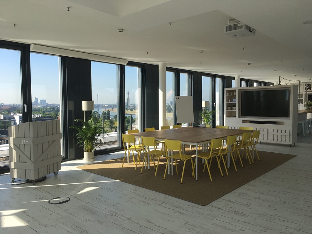 Unsere Empfehlung: Die „Sturmfreie Bude“ in Düsseldorf, eine urbane Designlocation mit Wohlfühlatmosphäre in der 11. Etage des Three George Hauses. Der Freiraum mit seinen 350 m² Fläche sowie die 100 m² große Dachterrasse mit sensationellem Rundumblick bis zum Rhein bieten sich für jegliche Art von Events an, ganz gleich, ob Workshop, Seminar oder Konferenz.