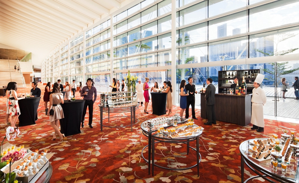 Doch nicht nur für Incentive-Gruppen ist das Hotel lohnenswert, auch die Veranstaltungsräume des Sands Expo & Convention Centre sind auf höchstem internationalen Standard und mit 250 Räumen für alle Arten von Meetings geeignet. Bei einer Tour mit dem Sustainability-Director erfahre ich – am Beispiel des Responsible Business-Forums 2013 – wie extrem hoch die grünen Ansprüche sind: Ein intelligentes System des Marina Bay Sands ermittelte den Energieverbrauch und die gesamte Nachhaltigkeit der Veranstaltung. Hierfür wurde ein sogenannter MeetGreen®-Rechner genutzt. Anschließend wurden die kumulierten Kohlenstoffemissionen der Veranstaltung mit einer Investition in einem Geothermik-Energieprojekt in Indonesien ausgeglichen. Um Abfälle zu reduzieren, gab es keine Konferenztüten und Broschüren mehr. Einlassbänder und Kartenhalter wurden aus vom Forrest Stewardship Council (FSC) zugelassenen Materialien, recycelten PET-Flaschen oder Bananenfasern hergestellt. Dabei nutzen die Organisatoren durchweg ein ausgeklügeltes Nachhaltigkeitsplanungs-Tool, das „Marina Bay Sands ECO360°“. Hier handelt es sich um umweltfreundliche Meeting-Optionen, wie z. B. Wasserspender und wiederverwendbare Gläser statt Mineralwasserflaschen oder Gewürze in größeren Behältnissen anstatt in einzelnen Beuteln.