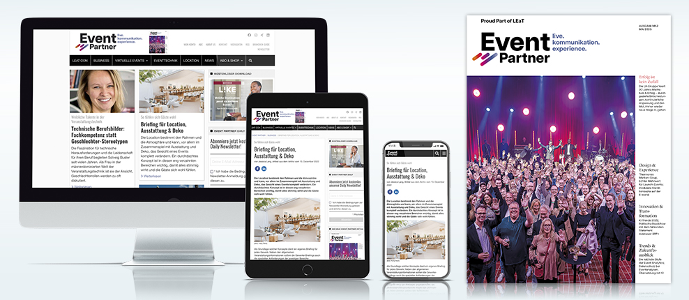 Mit den Medien Event Partner, PRODUCTION PARTNER und PROFESSIONAL SYSTEM erreichst du alle entscheidenden Segmente in der professionellen Veranstaltungstechnik, AV-Systemintegration und -Planung sowie im Event-/Veranstaltungsmanagement.