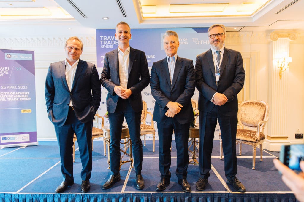 Auf der Pressekonferenz zur Eröffnung der Travel Trade Athens 2023 und zum Start der Frühjahrssaison waren neben Kostas Bakoyannis, dem Bürgermeister von Athen, auch Yiannis Paraschis, Vorstandsvorsitzender des Internationalen Flughafens Athen (AIA), Eftichios Vassilakis, Präsident von Aegean, und Tim Fairhurst, Generalsekretär der ETOA, anwesend.