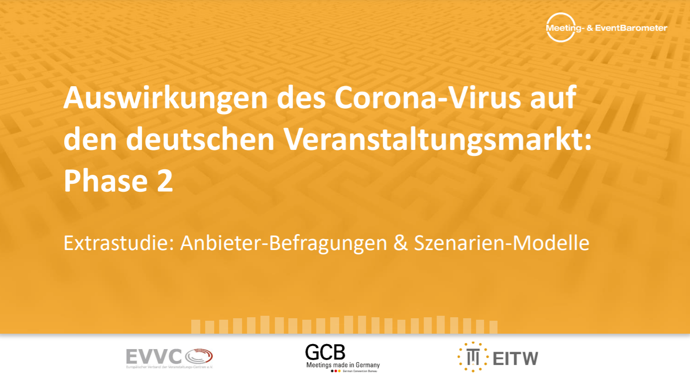 Das Europäische Institut für TagungsWirtschaft EITW hat die Szenarien zu den Auswirkungen der Corona-Krise auf den Veranstaltungsmarkt in Deutschland aktualisiert. In Abhängigkeit vom weiteren Infektionsgeschehen sowie von medizinischen und gesundheitsökonomischen Faktoren wird sich der Markt für Tagungen, Kongresse und Events im Jahr 2021 verhaltener oder dynamischer erholen können. Doch unabhängig von der Geschwindigkeit ist bereits jetzt klar: Der Markt wandelt sich auf Angebots- wie auch auf Nachfrageseite.