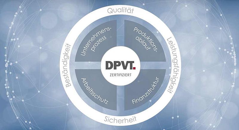 Als einziges Siegel kommt das DPVT-Zertifikat aus der Branche. Dadurch könne, so die DPVT, ein direkter inhaltlicher Bezug gewährleistet werden. Im Gegensatz zur DIN ISO 9000 beispielsweise gehe man nicht nur in die Theorie, sondern auch in die Praxis. Neben Unternehmen und Niederlassungen würden bei der DPVT Produktionen live in Augenschein genommen und so überprüft werden, dass auch im hektischen Tagesgeschäft alles für einen professionellen, sicheren, reibungslosen und regelkonformen Ablauf getan würde.