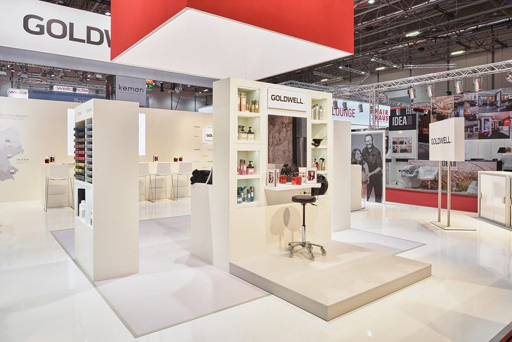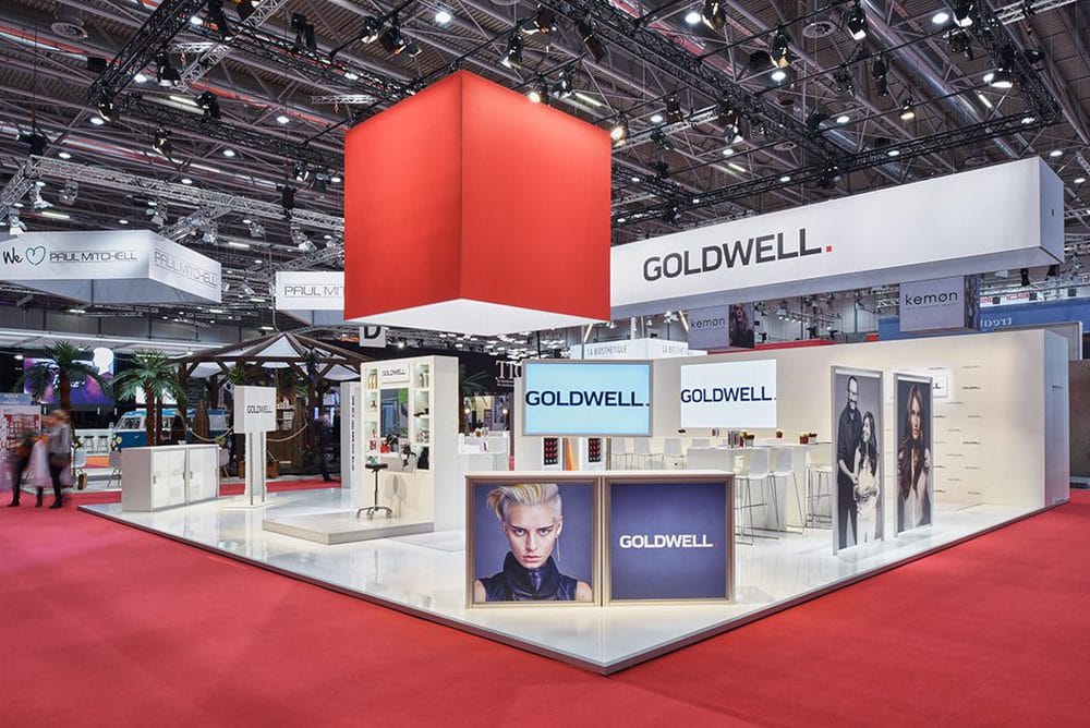 Goldwell und KMS California präsentierten sich in Düsseldorf mit einer Weiterentwicklung des letztjährigen Auftritts. Das von Artlife realisierte Standkonzept der Wiesbadener Agentur Brandscape Creative Consultancy rückte mit dem diesjährigen Konzept die Kompetenz der Marke Goldwell rund um das Thema Professionelle Produkte und Dienstleistungen für Friseuere konsequent in den Mittelpunkt.