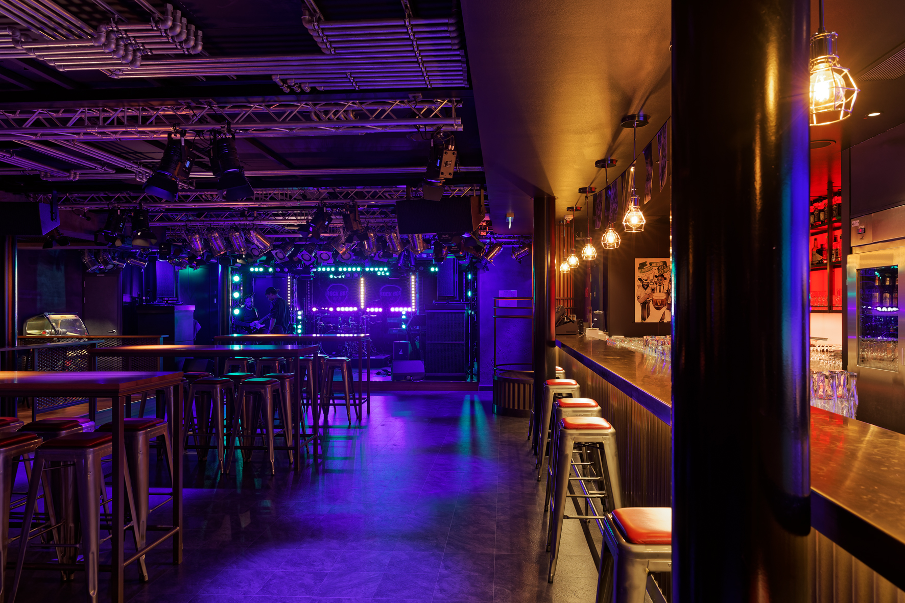 Die d&b audiotechnik Beschallung ist ein deutlich sichtbarer Teil des Ambientes der Rock Box Bar. Backsteinwände, dunkles Mobiliar und geschickt eingesetztes Licht machen die Rock Box Bar zu einem lässigen Pub, deren Decke von Traversen durchzogen ist. Das Lichtdesign setzt vielfach auf PAR-Kannen und ACL-Blinder mit analogen Look, aber energiesparenden LED Leuchtmitteln.(Bild: ASC)