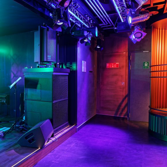 Live gespielte Hits von Guns n´ Roses, Led Zeppelin oder Deep Purple gehören hier zum abendlichen Repertoire. Das Ambiente wirkt wie ein typischer Rock-Club. Schon der Eingang ist anders, denn diesen haben die AIDA Architekten mit einem Tunnel aus Lautsprechern dem Namen folgend sehr originell designt. Das Hauptaugenmerk liegt eindeutig auf der Bühne der Bar. Auch im Rock Club stammt die hochwertige Live-Beschallung aus dem Portfolio von d&b audiotechnik; Die Main-PA bestehend aus Vi10P Punktschallquellen und Vi-GSUB Basslautsprecher ist klassisch links und rechts der Bühne aufgestellt. Es fällt auf, dass die Beschallung diesmal ganz bewusst nicht unsichtbar wie sonst in der Innenarchitektur auf AIDAnova integriert wurde. Sie ist ein deutlich sichtbarer Teil des Ambientes der Rock Box Bar. Gemischt wird der Sound der Live-Band am FOH-Platz auf einer DiGiCo SD8-Konsole.