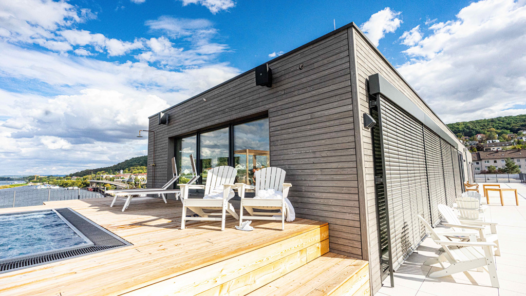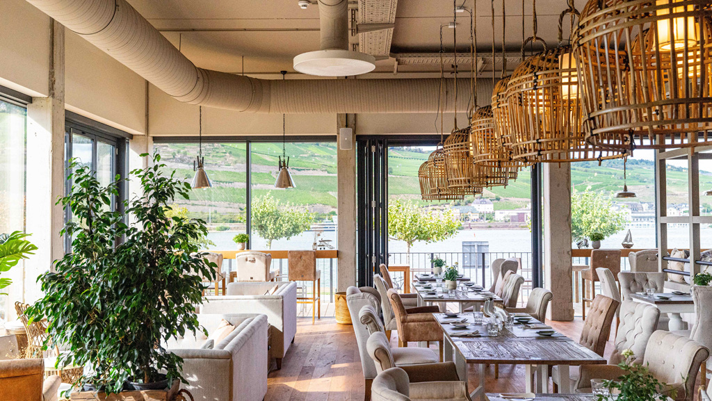 Ob im Restaurant, Bar- und Loungebereich oder auf der Dachterrasse – das Papa Rhein setzt auf viel Glas, um den Blick auf das Mittelrheintal jederzeit zu gewährleisten. Auch das Interieur sei bis ins letzte Detail durchdacht, was die Wahl des passenden Beschallungssystems nicht leichter mache. „Der zentrale Faktor für den Kunden war die Optik der Lautsprecher“, bestätigt David Peltzer, Projektleiter bei audiluma. „Zudem ist AUDAC im Preis-Leistungs-Verhältnis kaum zu schlagen.“