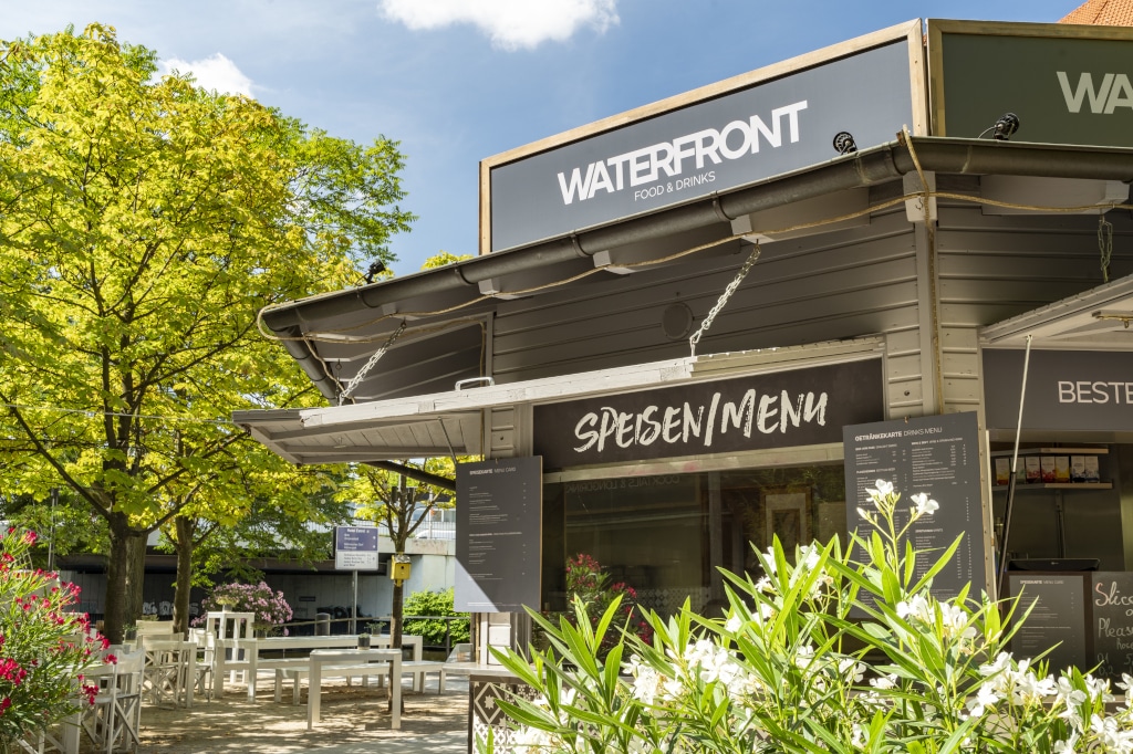 „Waterfront“ biete seinen Gästen kühle Drinks und eine Auswahl kulinarischer Kleinigkeiten aus dem Estrel Berlin. Geöffnet sei bei schönem Wetter täglich ab 15 Uhr, Sonnenallee 225 in Berlin-Neukölln, S-Bahnhof Sonnenallee.