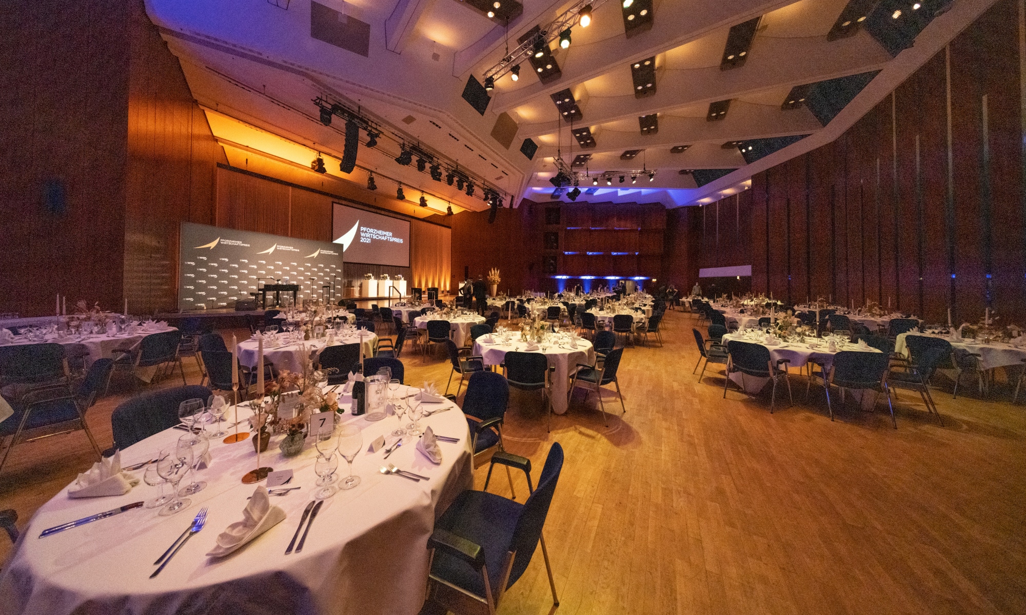 Das CongressCentrum Pforzheim sorgte für ein stimmungsvolles Ambiente, eine sichere Veranstaltung unter 3G-Gesichtspunkten und die technische Umsetzung während das Parkhotel Pforzheim mit einem festlichen Gala-Menu für das Catering verantwortlich zeichnete.