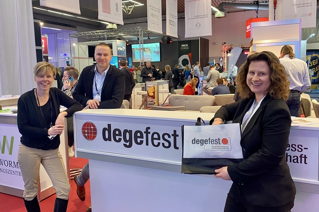Der degefest-Messestand soll zum Treffpunkt für alle degefest-Mitglieder und Interessierte werden, die sich über die Verbandsarbeit informieren möchten. Außerdem falle er größer aus als noch in diesem Jahr. Auf der Standfläche sollen sich folgende Unternehmen präsentieren: Messe und Congress Bremen, Congress Center Böblingen/Sindelfingen, DIN Event GmbH, Partyschiffe.de, Esslingen Live, Filharmonie Filderstadt, Stadthalle Göppingen, Stadthalle Hockenheim, Filderhalle Leinfelden-Echterdingen, Messe- und Veranstaltungsgesellschaft Magdeburg GmbH, Luise-Albertz-Halle Oberhausen, Congress Centrum Pforzheim, DHBW-Ravensburg/Wissenschaftlicher Beirat degefest, Lufthansa Seeheim, Rhein-Sieg-Forum, Hotel CampReinsehlen, Congress Centrum Suhl und die Stadthalle Troisdorf.