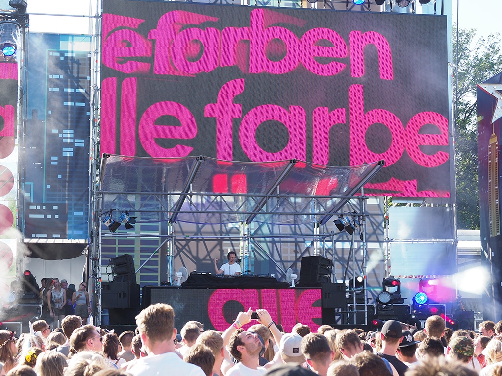 Das Lichtequipment, welches verbaut wurde, bestand aus insgesamt 66 Fixtures, unter anderem Robe Robin Pointes, Martin Mac Quantum Profiler, Martin Mac Viper Profiler und SGM P5er. Das Main PA Line Array bestand aus Material der d&b V- und J-Serie. Die Visuals und Animationen wurden von dlp motive via Medienserver auf die vier LED-Flächen gespielt. So ergab sich ein für die Veranstaltung hervorragend passendes Setup, auf dem sich auch die Künstler sichtlich wohlfühlten. On Stage waren unter anderem Alle Farben, Klangkarussell und Lost Frequencies.