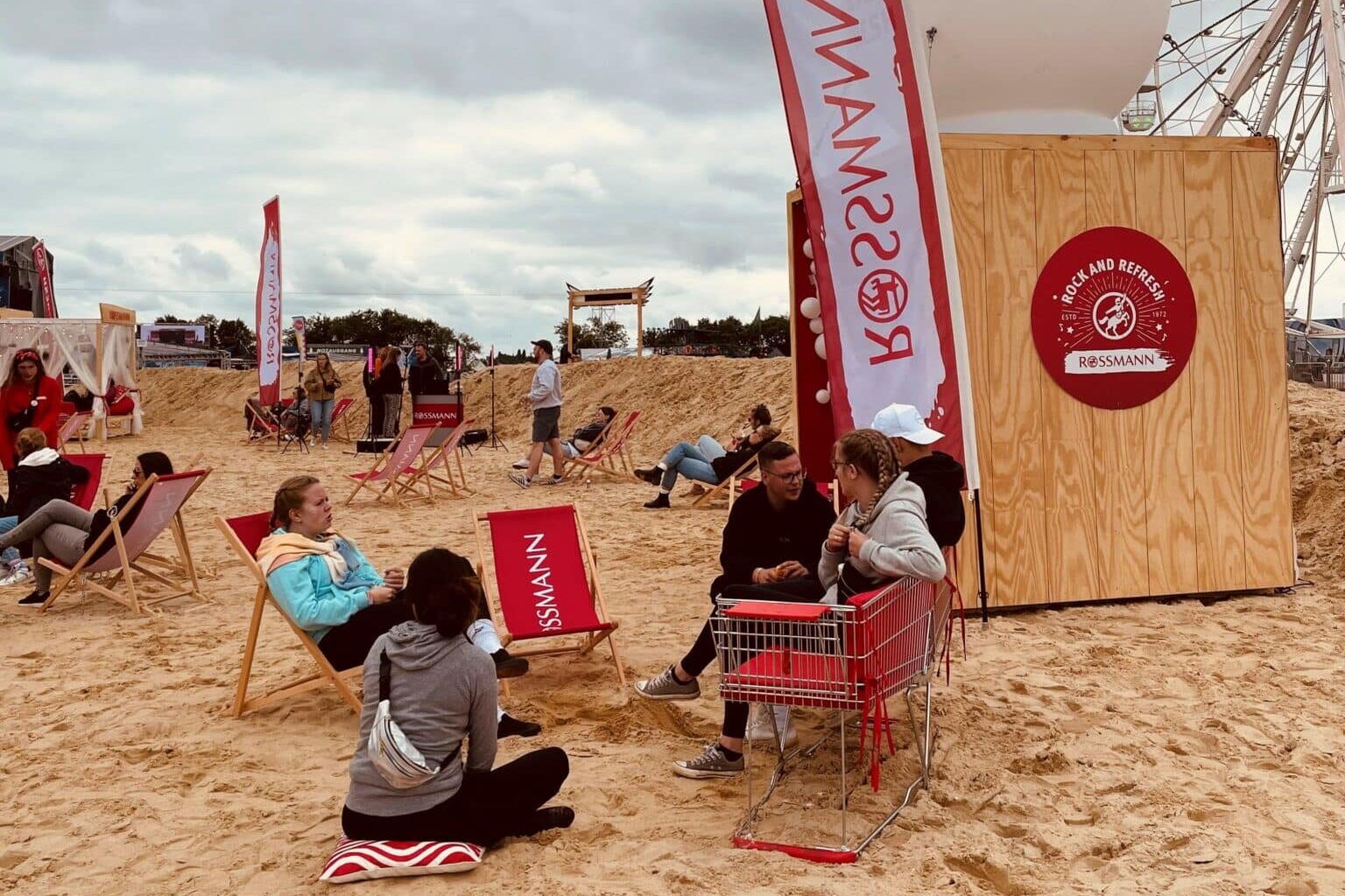 Unter dem Motto „Rock & Refresh” war Rossmann Hauptsponsor des Deichbrand-Festivals. Dazu inszenierte East End mehrere Erlebnisbereiche: Auf der ca. 800m2 großen Freifläche, der „Rock and Refresh Area“, wurde ein Dusch- und Stylingbereich errichtet – mit diversen Rossmann-Produkten sowie einer Fotobox, weiteren Foto-Möglichkeiten und Einkaufswagenmöbeln. An einer dort installierten Bar legte zudem ein DJ auf. Hier fand am Sonntag zudem eine Schaumparty statt. Der zweite Bereich wurde zu einer großen Chill-Out-Fläche im Infield gestaltet, wo Rossmann weitere Foto-Möglichkeiten bereitstellte und ein Seifenblasenkünstler die Besucher:innen unterhielt. Darüber hinaus waren auf dem gesamten Camping-Areal und der Haupt-Konzertfläche die Crew der Rossmann-Refresh-Runner unterwegs – ausgestattet mit passenden Produkten von Rossmann, wie Sonnencreme, Hygienegel, Wasserspray, Insektenschutz und vielem mehr. Die Aktivierung der Experience wurde seitens Rossmann konsistent durch eine Pre-Posting-Strategie mit Gewinnspiel auf Social Media fortgesetzt sowie mit einer begleitenden PR-Offensive abgerundet.