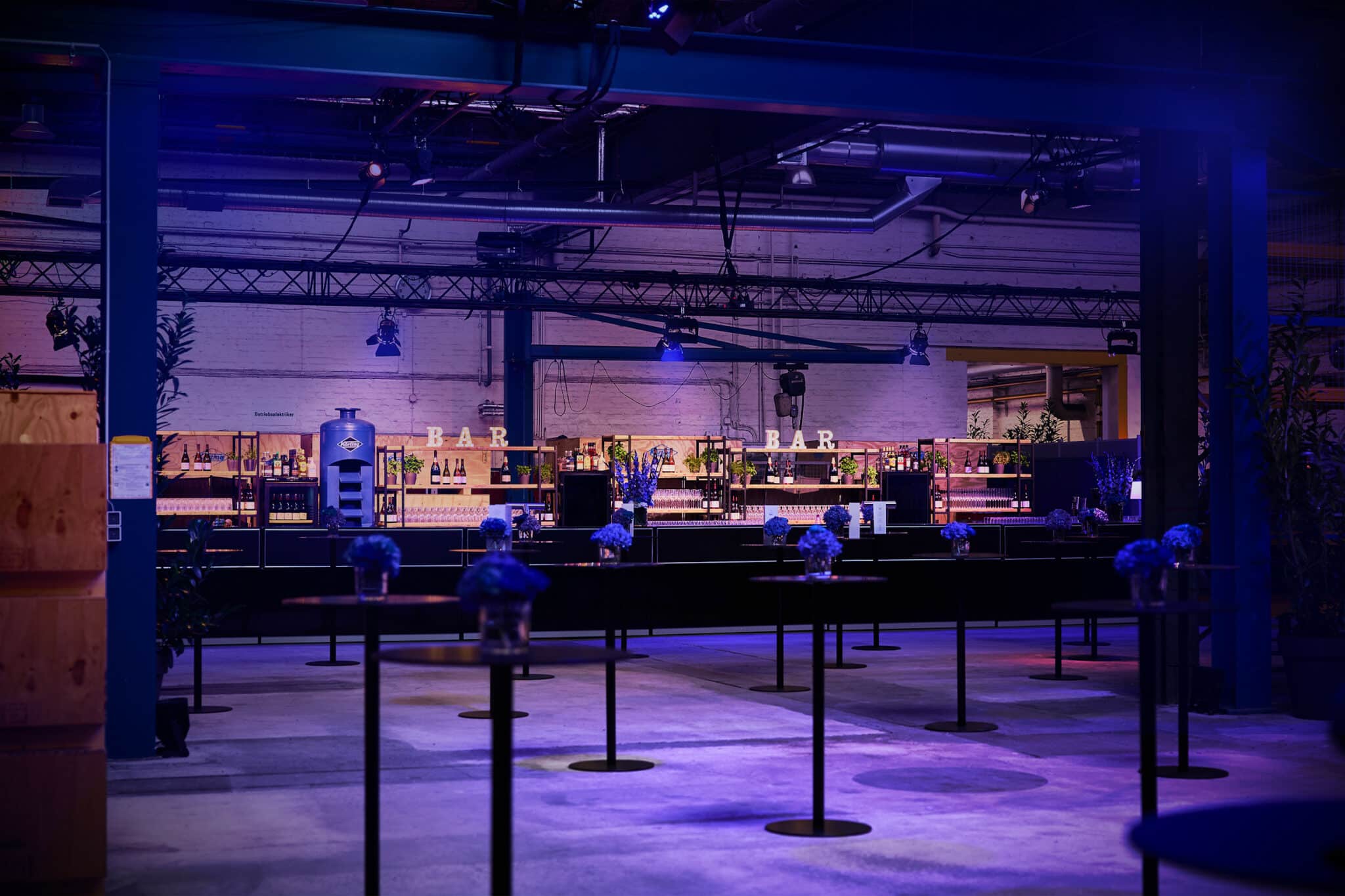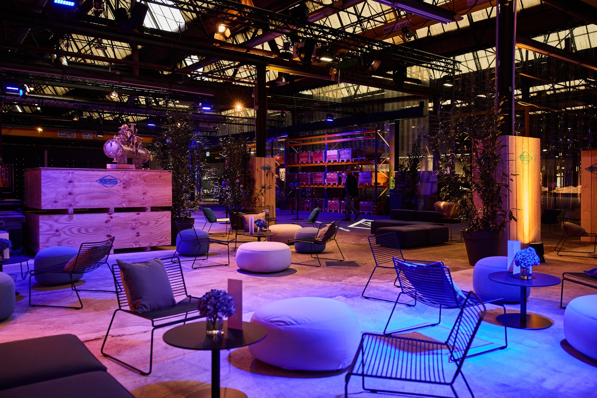 Zu den Besonderheiten des Events zählte u.a. die Eventlocation: die Körting-eigene Werkhalle im Herzen von Hannover-Linden. Für eine Jubiläumsfeier „im eigenen Zuhause“ musste dort, wo jahrzehntelang schwere Fertigungsanlagen zur Herstellung von Strahlpumpen und Vakuumtechnik ihre Arbeit taten, Platz geschaffen werden, was insbesondere für die Projektleitung von event it zur Herausforderung wurde. Für die Nutzung der Werkhalle als Eventlocation musste beispielsweise ein rund 60 Seiten umfassender Nutzungsänderungsantrag gestellt werden – passend für bis zu 900 Gäste inklusive Veranstaltungspersonal. Erforderlich war auch die Installation einer Evakuierungsanlage sowie das Einreißen einer Wand, um eine breitere Tür einbauen zu lassen und damit Fluchtwegbreiten einhalten zu können. Die Werkhalle von knapp 3.000m2 wurde noch während des Produktionsbetriebs geräumt. Für den Veranstaltungszeitraum wurde die Produktion schließlich vorübergehend eingestellt.
