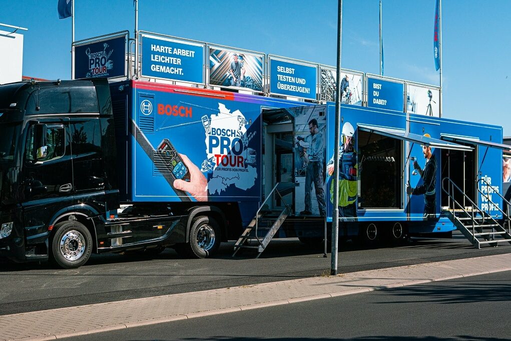 Fünf Monate on Tour: 35 Einsatztage. 28 Stopps in u.a. München, Köln, Hamburg und Leipzig. Mehr als 10.000 zurückgelegte Kilometer. Und rund 5.000 Besucher:innen aus dem Handwerk. Das war die Bosch Pro Tour 2022 in Kürze. Das Konzept sowie die Umsetzung der Roadshow stammen aus der Feder von follow red. Die Tour läuft noch bis mindestens Ende 2023 weiter.