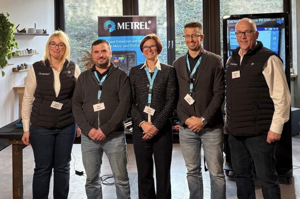 Katrin Wiegard, Geschäftsführung Metrel Deutschland, Blaž Godina, Product Manager Metrel Slowenien, Mojca Vengar Regionale, Vertriebsleitung Slowenien und DACH, Miha Doberlet, Product Manager und Consultant Metrel Slowenien und Christian Koch, Chief Operating Officer Deutschland (von links) (Bild: format:c)