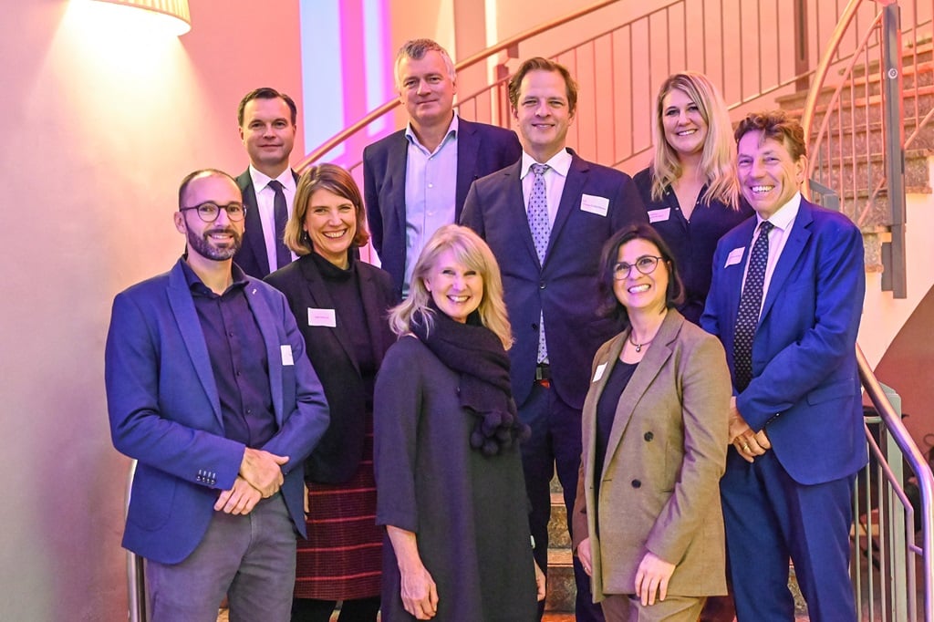 Erste Reihe: Martin Süß (IHK Frankfurt am Main), Jutta Heinrich (Frankfurt Convention Bureau), Eva Klinger (Messe Frankfurt Venue GmbH), PD Susanne Schubert-Bast (Universitätsklinikum Frankfurt, Goethe-Universität), Prof. Thomas Kohnen (Universitätsklinikum Frankfurt, Goethe-Universität); Zweite Reihe: Prof. Timo Stöver (Universitätsklinikum Frankfurt, Goethe-Universität), Prof. Udo Rolle (Universitätsklinikum Frankfurt, Goethe-Universität), Prof. Christian Grefkes-Hermann (Universitätsklinikum Frankfurt, Goethe-Universität), Stadträtin Stephanie Wüst (Bild: Paul Müller)