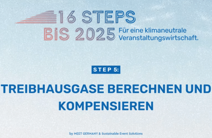 Die Initiative „16 Steps bis 2025 – Für eine klimaneutrale Veranstaltungswirtschaft“ hat ihren fünften Schritt vorgestellt: Treibhausgase berechnen und kompensieren.