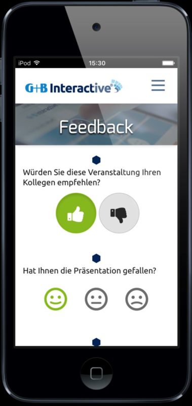 Zeitgleich zum Website-Relaunch ist nun auch die neue G+B Interactive Event App erhältlich. Mit der integrierten Demoshow zur App möchte das Team von G+B Interactive das Thema „bring your own device“ für seine Kunden erlebbar machen. Dies bezeichnet die Nutzung von G+B InteractiveSoftwaretools auf dem eigenen Smartphone oder Tablet. Kunden können die Demoshow ebenfalls nutzen, um sich persönlich einen Überblick über die zahlreichen Funktionen der Event App zu verschaffen.