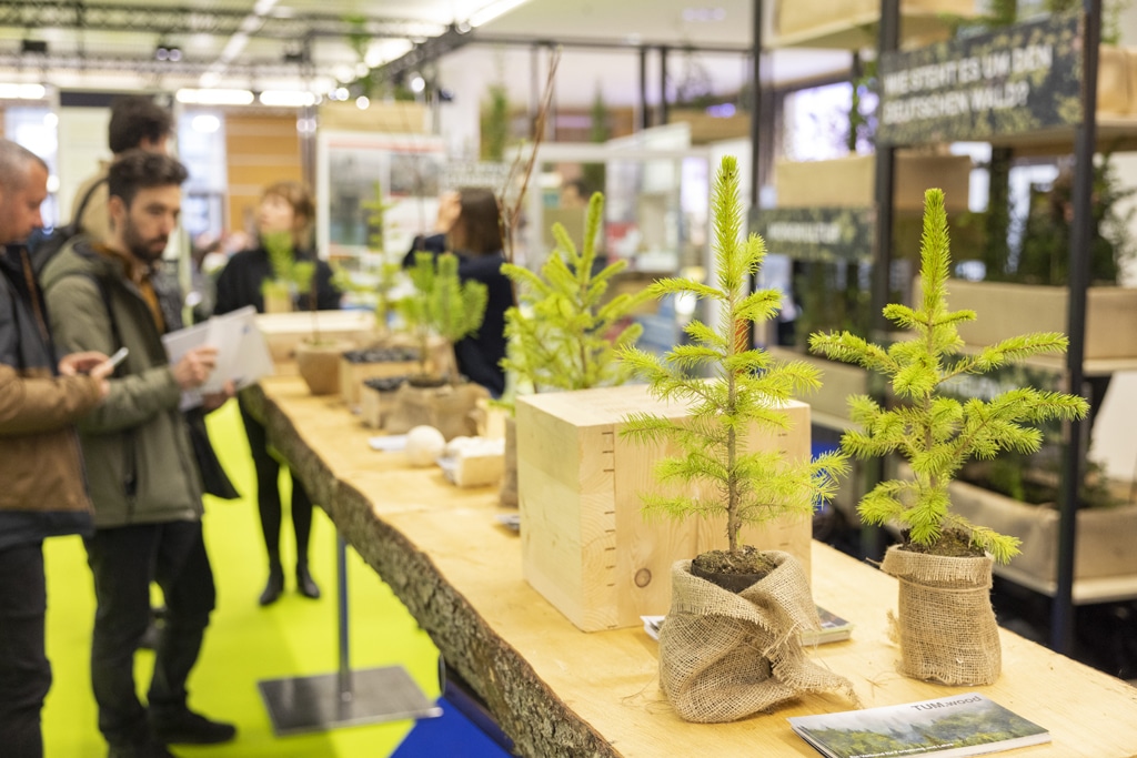 Die Messebau-Tochter meplan habe vorige Woche zur BAU in einer eigenen Halle eine Premiere gefeiert: Dort wurden die Stände mit 3.000 Baumsetzlingen dekoriert – von der Kiefer bis zur Buche. „Lasst uns damit einen Wald pflanzen, statt Leihpflanzen zu nehmen, die oft nachher weggeworfen werden“, sei die Idee von Matthias Strauß gewesen, Projektleiter der Messe BAU. Dafür arbeiteten das BAU-Team und die Messstandbauer von meplan eng zusammen.