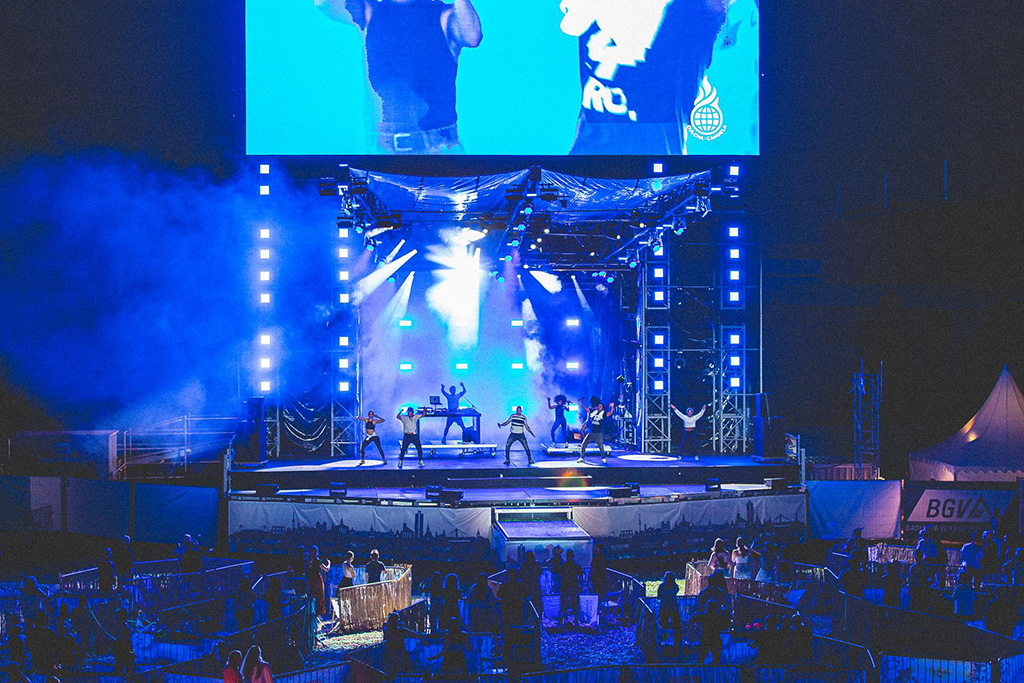 Im Bühnendach selbst finden sich 10 impression X4 Wash. Als Frontlicht kommen 15 weitere X4 sowie 15 KNV Line zum Einsatz. Eine Background-Matrix aus zwölf der vielseitigen Hybrid-Strobes JDC1 sorgt für ordentlich Druck von hinten. Auch die Sidewings sind mit insgesamt 50 Fusion Stick FS20 von Fusion by GLP, 36 KNV Cube und 16 Exobeam üppig bestückt. Dieses Setup steht allen auftretenden Künstlern gleichermaßen zur Verfügung.