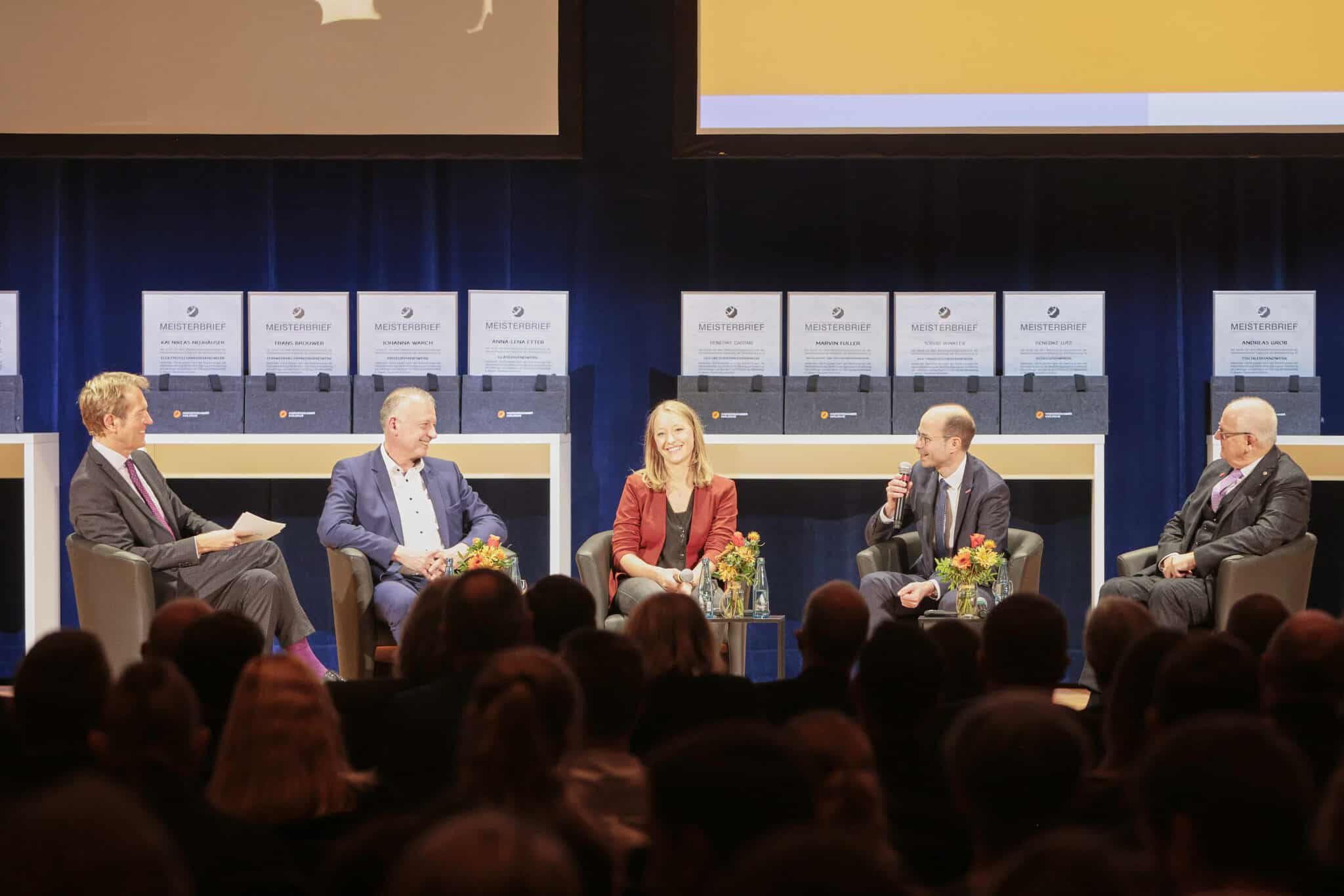 Insgesamt 337 neue Meister:innen aus 16 Gewerken bekamen ihren Meisterbrief durch Handwerkskammerpräsident Joachim Wohlfeil und Hauptgeschäftsführer Walter Banleon überreicht. Durch das Live-Bühnenprogramm führte Fernsehmoderator Markus Brock, musikalisch begleitet von vier Streicherinnen.