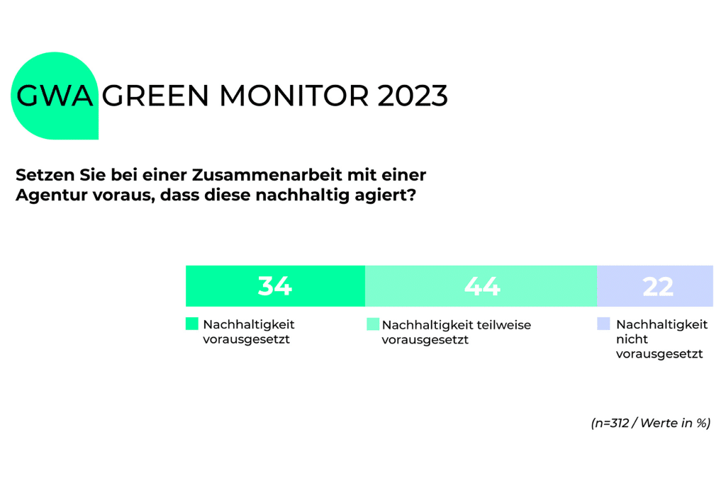 Die Studie zeigt zudem, dass aus Sicht der Unternehmen Verbraucher:innen zwar Nachhaltigkeit einforderten, aber dies keine durchgängig belastbare Haltung sei. Die Ansprüche bezüglich Nachhaltigkeit hingen sowohl von den wirtschaftlichen Rahmenbedingungen als auch von den Produktkategorien und Branchen ab. Für fast ein Drittel der Auftraggeber seien formale Nachweise zu Nachhaltigkeit bei Agenturen wie beispielsweise ISO-Normen wichtig.
