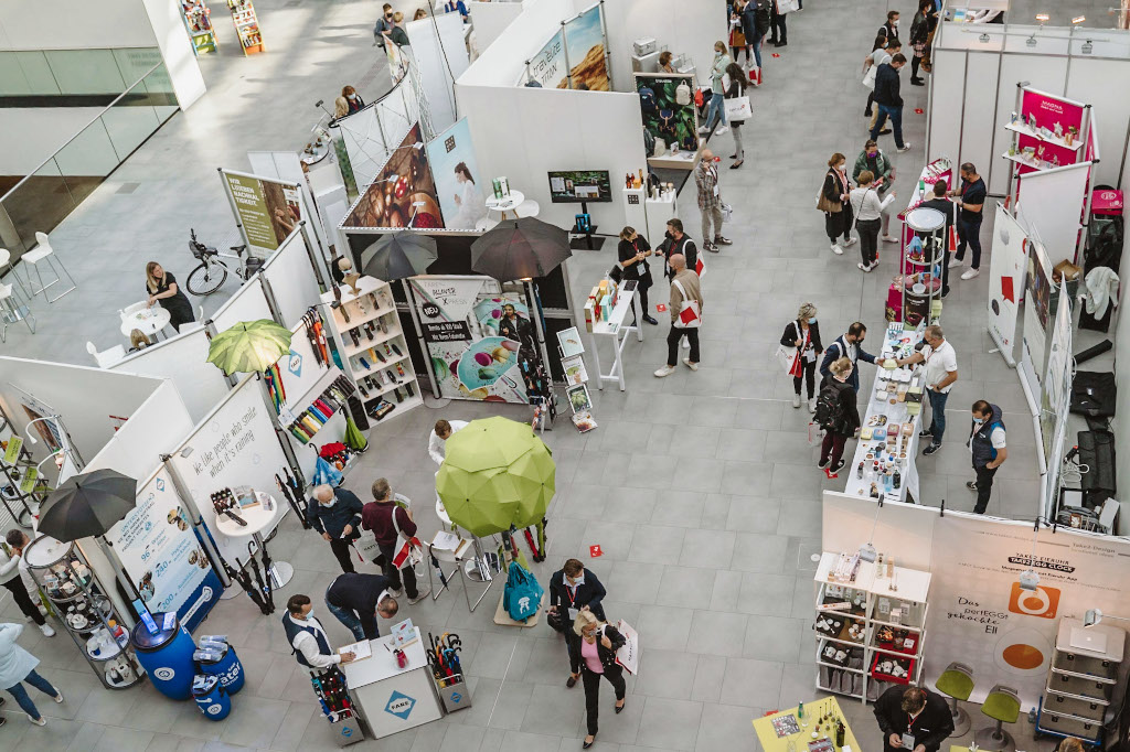 Mehr als 100 Aussteller aus verschiedenen Produktbereichen präsentieren im Foyer und in der Halle des WCCB ihre Portfolios. Mit dabei: Marken und Start-ups, Produkte wie Taschen oder Schreibgeräte und ausgefallenere Dinge wie Aromasticks oder Allround-Reiniger sowie nachhaltige Produktideen.