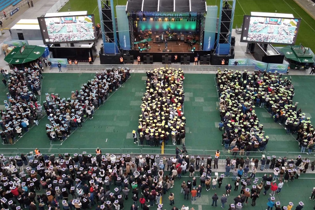 Teil des Event-Konzepts sei auch die Verwandlung der Außenflächen vor dem abendlichen Abschlusskonzert in eine Erlebnis- und Begegnungsmeile mit Street-Food-Ständen, einem Biergarten, einem Bühnenprogramm und Mitmachaktionen gewesen. Zudem habe die Agentur als Full-Service für die Mitarbeiter:innen einen Shuttle für rund 4.800 Personen in 150 Bussen organisiert sowie 4.500 Hotelübernachtungen in der gesamten Region für die Veranstaltung ermöglicht. Der Vonovia Day folgt dem Leitgedanken, Menschen aus unterschiedlichen Ländern, Firmenkulturen und dezentralen Strukturen zu einem gemeinsamen „WIR“ zusammenwachsen zu lassen.