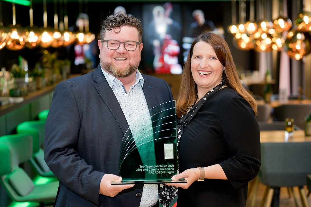 Das in einem zwei Hektar großen Park in Hagen gelegene Arcadeon wurde 1998 im Rahmen eines Public-Private-Partnership-Projekts gegründet und steht seitdem unter der Leitung von Jörg und Claudia Bachmann. „Neues Denken braucht neue Räume“ – dieser Leitgedanke des Hotelier-Ehepaares ist die Grundlage des Erneuerungsprozesses „Arcadeon recreated“, bei dem sie das Hotel 2017 völlig neu konzipiert und für veränderte Tagungsbedürfnisse einer New-Work-Generation fit gemacht haben. Dabei wurde die typische Trennung der Funktionsbereiche Lobby, Gastronomie, Logis und Tagungsräume aufgehoben. Die Rezeption geht in die Bar über, öffentliche Bereiche werden zu Coworking Spaces, Gästezimmer zu „Transforming Rooms“, die sich in wenigen Handgriffen vom gemütlichen Schlafzimmer zum tagungsgerechten Arbeitsraum verwandeln lassen. Dieses „neue Denken“ war auch mitentscheidend für den Sieg in der Kategorie „Kreativprozesse“.