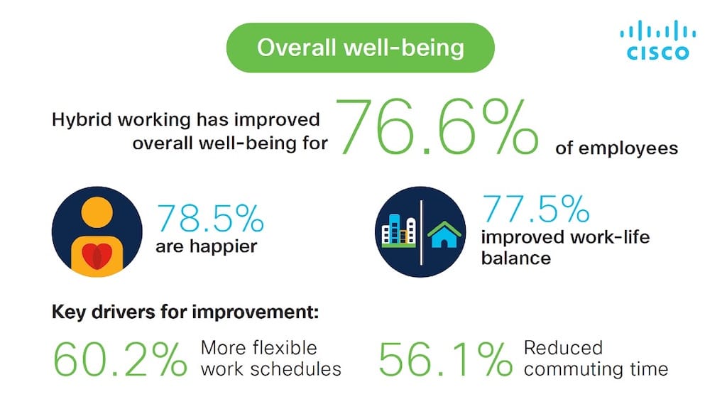 Hybrid Work verbessert das Wohlbefinden, die Work-Life-Balance und die berufliche Leistung. Das will die globale Studie „Employees are ready for hybrid work, are you?“ von Cisco zeigen.