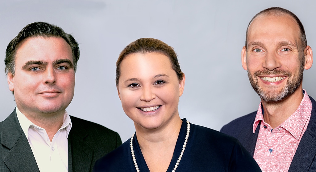 Die Master-Professoren Prof. Dr. Christian Arnold, Prof. Dr. Ina Kayser und Prof. Dr. Matthias Johannes Bauer (v. l. n. r.) beraten Interessierte bei der digitalen Sprechstunde persönlich. (Bild: IST-Hochschule für Management)
