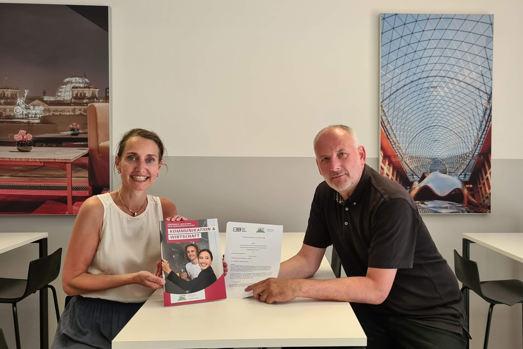 Dorothee Schulte und Marc Mundstock bei der gemeinsamen Vertragsunterzeichnung. (Bild: IST-Hochschule für Management)