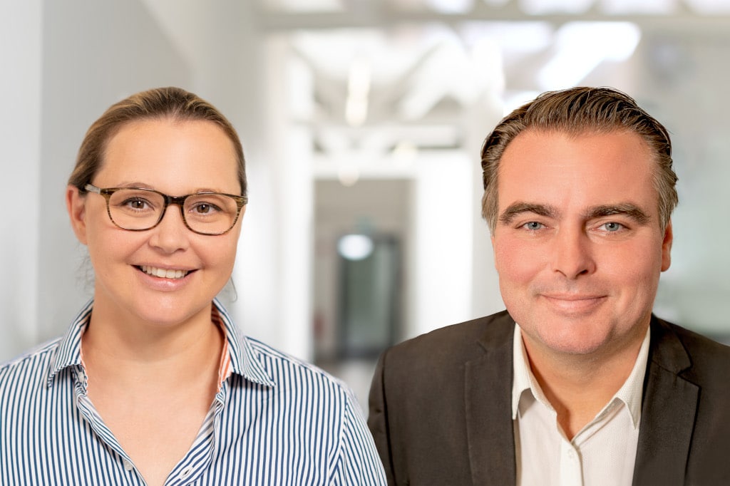 Beantworten am 20. Juni, 12 bis 13 Uhr, persönlich Fragen zu Master-Studiengängen: Prof. Dr. Ina Kayser (links), Studiengangsleiterin Business Transformation Management und Prof. Dr. Christian Arnold (rechts), Studiengangsleiter MBA Business Administration (Bild: IST-Hochschule für Management)
