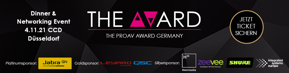 Am 4. November 2021 zelebrieren wir die deutsche ProAV-Branche! Im CCD Düsseldorf werden die Preisträger der diesjährigen AVards bei einem Gala-Dinner bekannt gegeben. Sichern Sie sich jetzt noch bis zum 13. Oktober ein Early Bird Ticket.