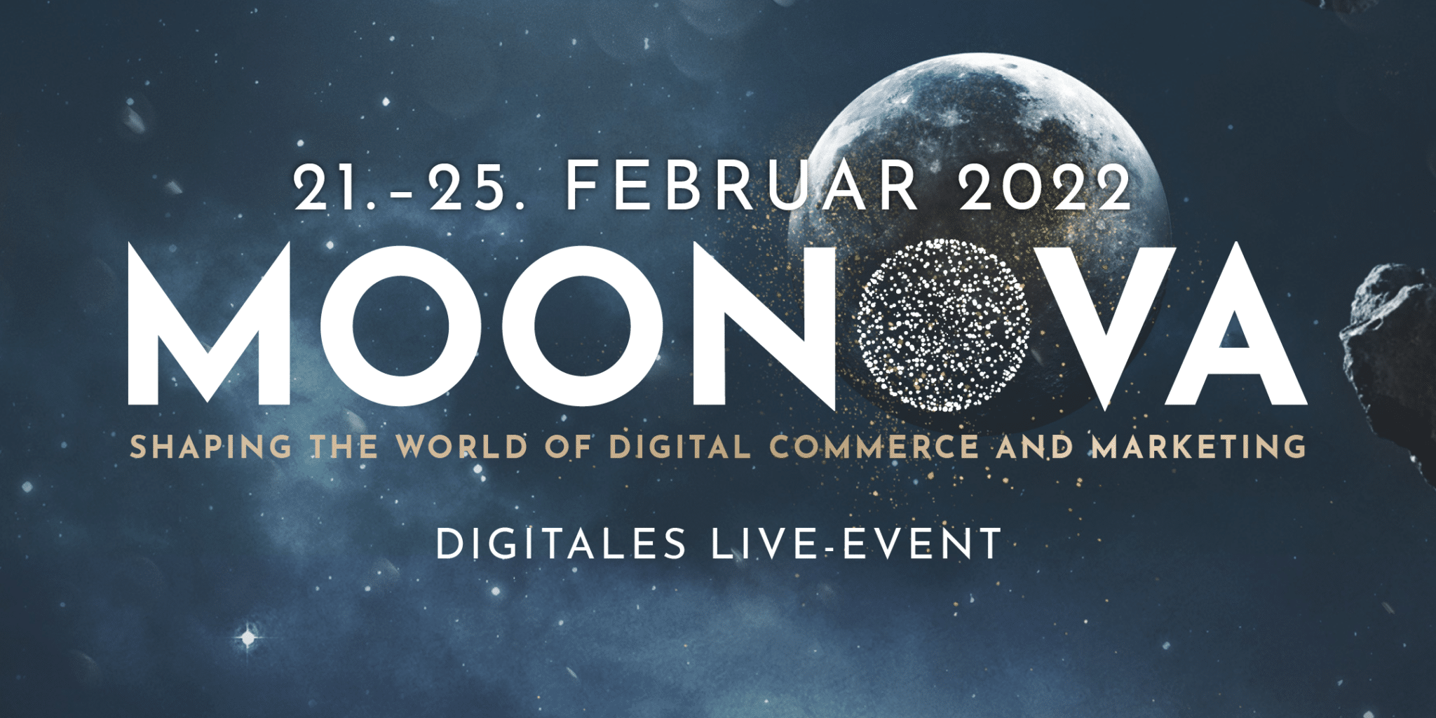 MOONOVA ist die digitale Konferenz und Expo für Entscheider und Macher im digitalen Commerce und Marketing und von 21. bis 25. Februar 2022 ist es so weit: Entscheider und Macher aus Marketing, Sales und Produkt sind eingeladen, einem spannenden Wochenprogramm zu folgen – und das kostenlos!