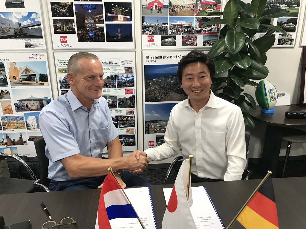 Zusammen mit Yuki Nomura, Präsident von TSP Taiyo, einem der Hauptvertragspartner für die Lieferung von Event Locations, hat Arnout de Hair, CEO der Losberger De Boer Gruppe kürzlich den Vertrag über die umfangreiche Lieferung von temporären Strukturen an zwölf Olympia-Standorte unterzeichnet.